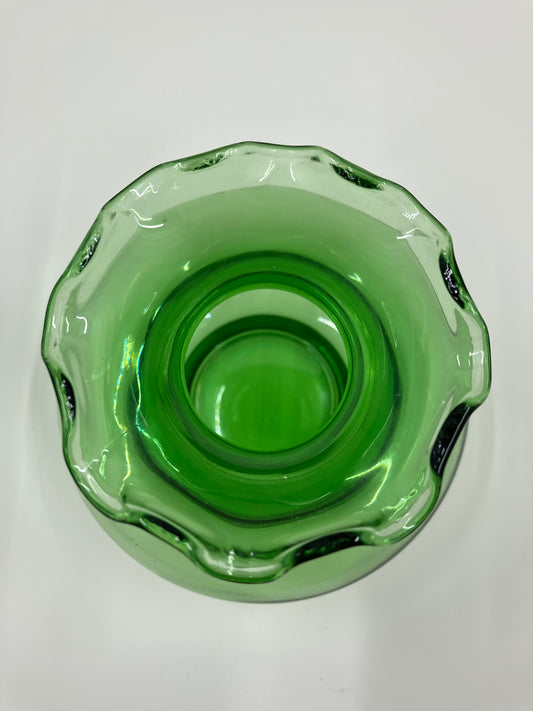Anchor Hocking Clear Green Ruffled Edge Glass Vase