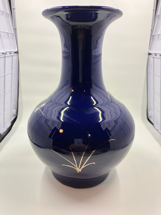 Chinese Monochrome Satsuma Blue Glaze Prunus Pattern Porcelain Vase