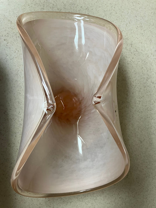 In the Style of Murano Pink Art Glass White Cristal Made in Italy. Centerpiece console folded bowl