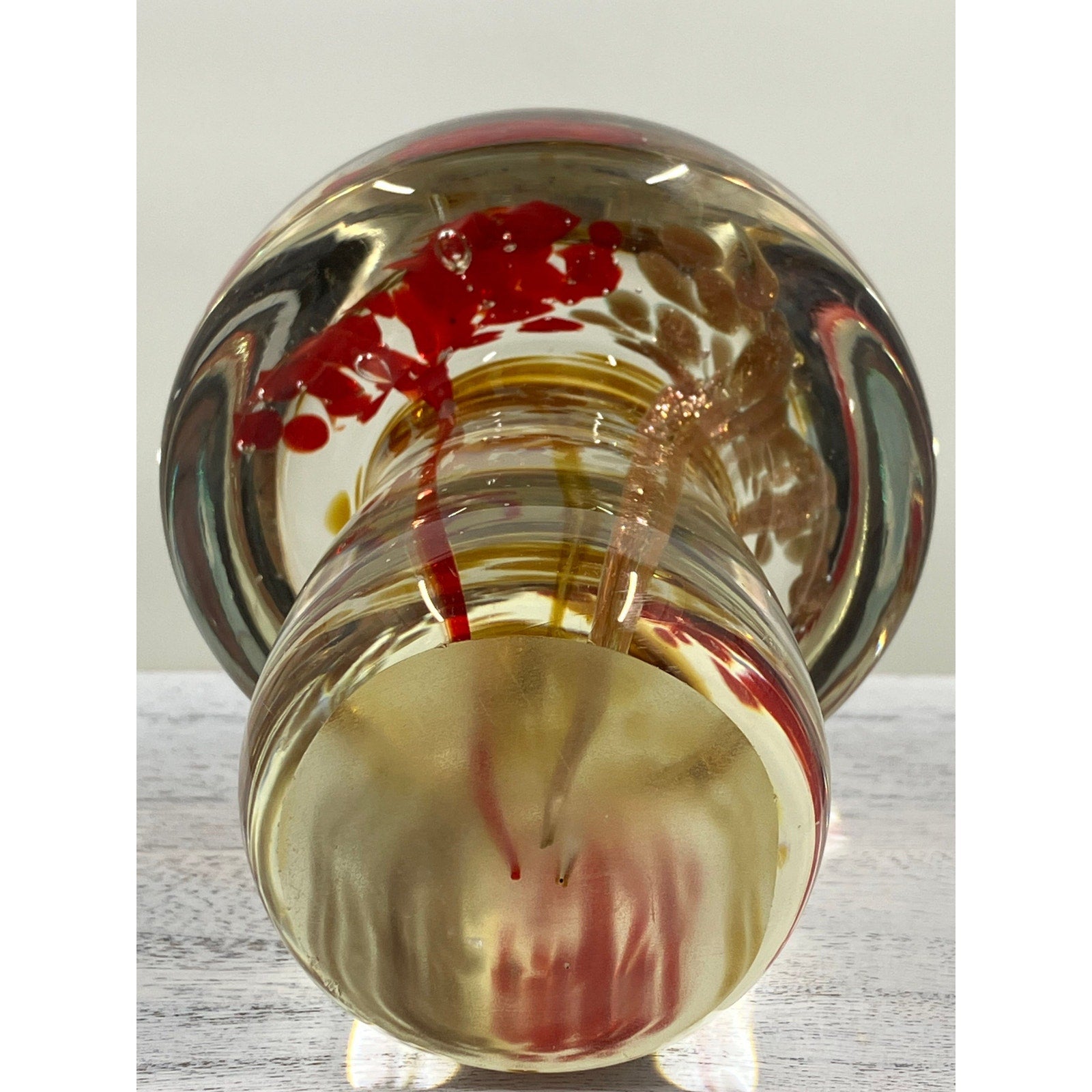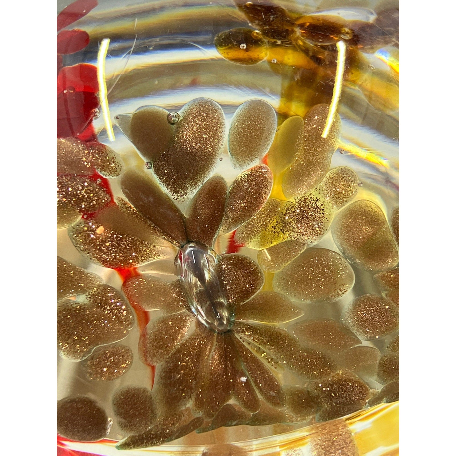 The glass is infused with sparkling elements, ensuring it catches and reflects light beautifully, creating a dazzling display from every angle. This handcrafted treasure is perfect for collectors of art glass, nature enthusiasts, or anyone looking to enhance their decor with a conversation-starting piece.